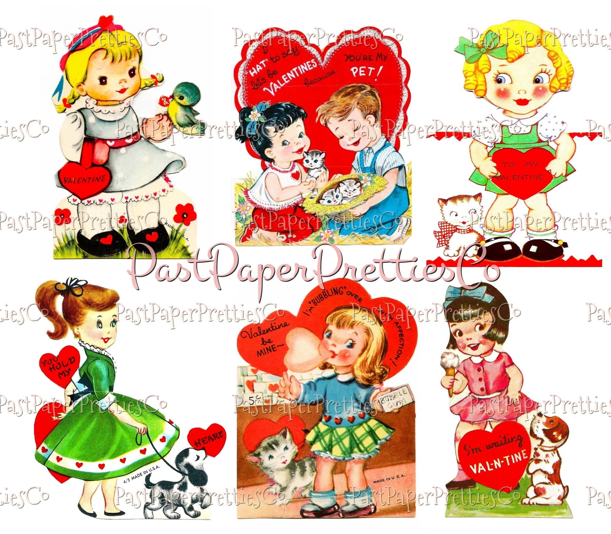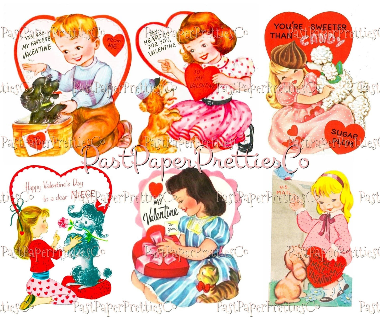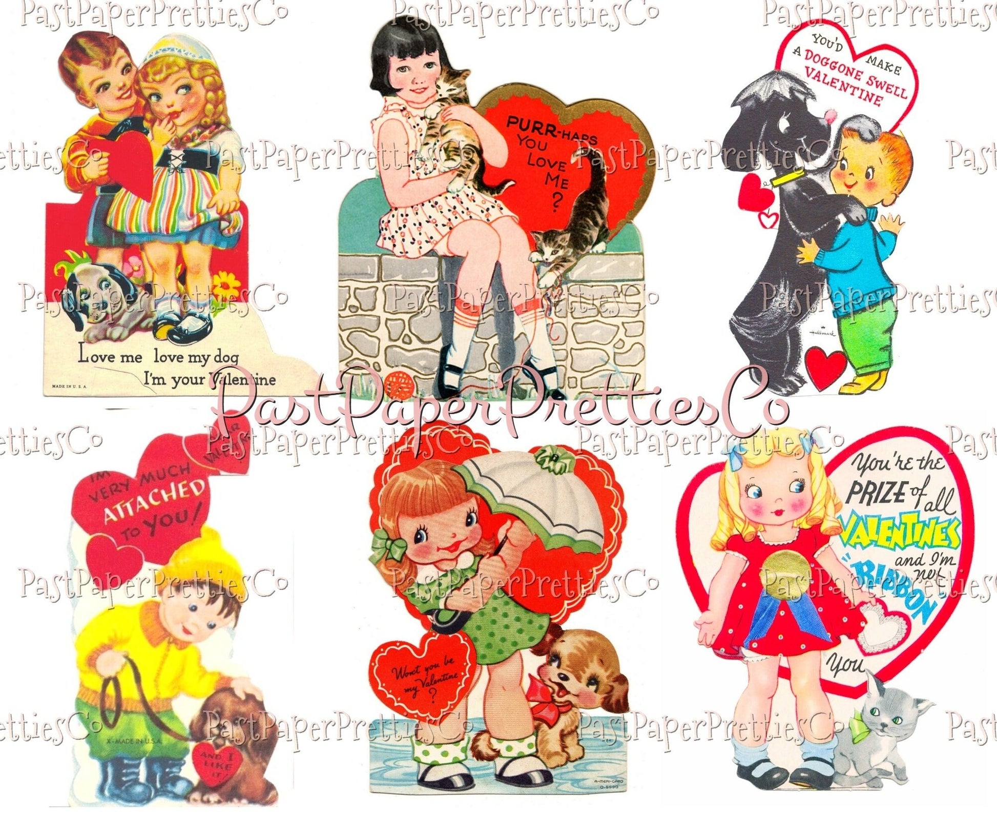 60 Vintage Printable Kids with Pets Valentine Cards Collage Sheets PDF Instant Digital Download Retro Boys Girls Animal Themed Images