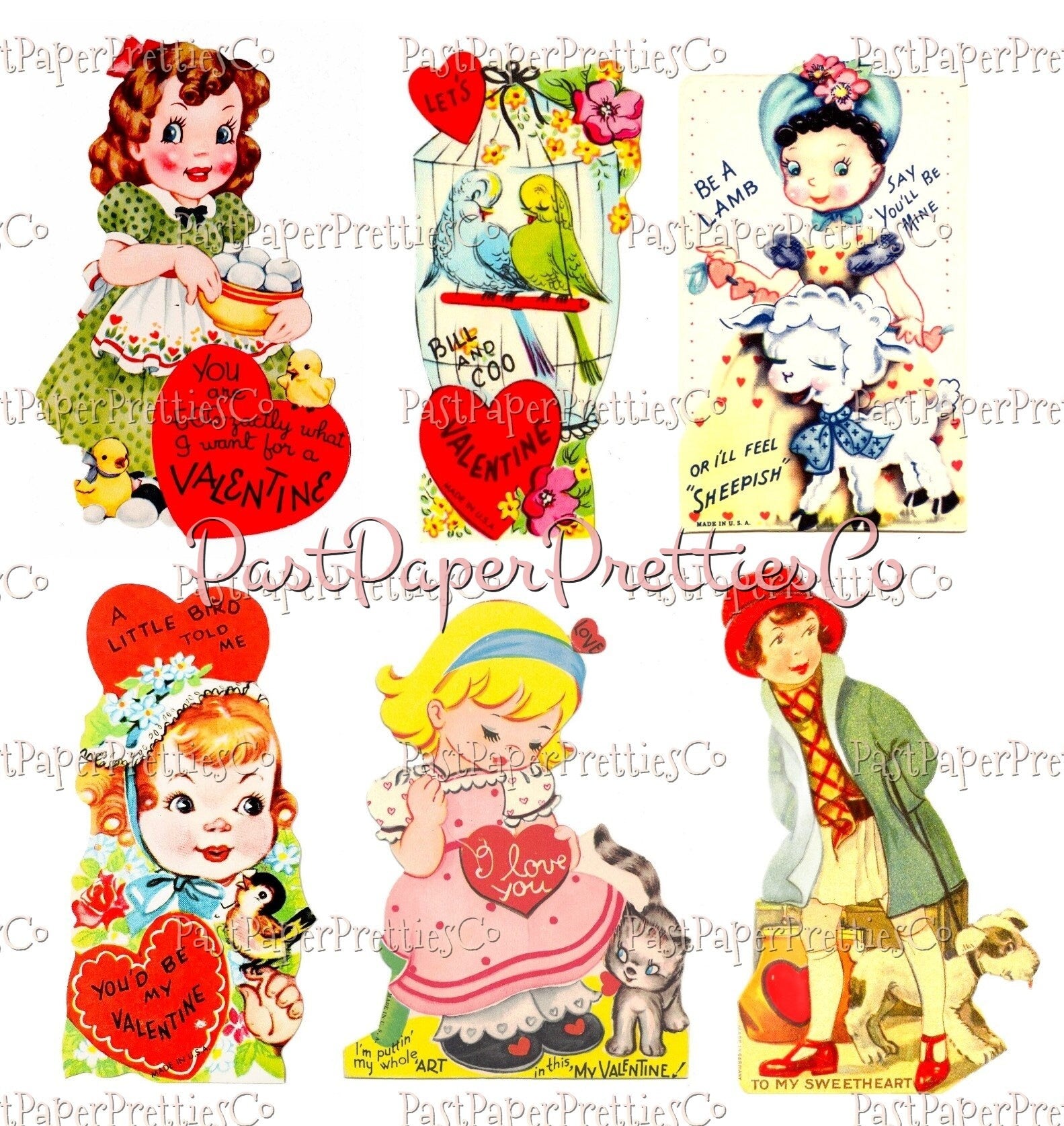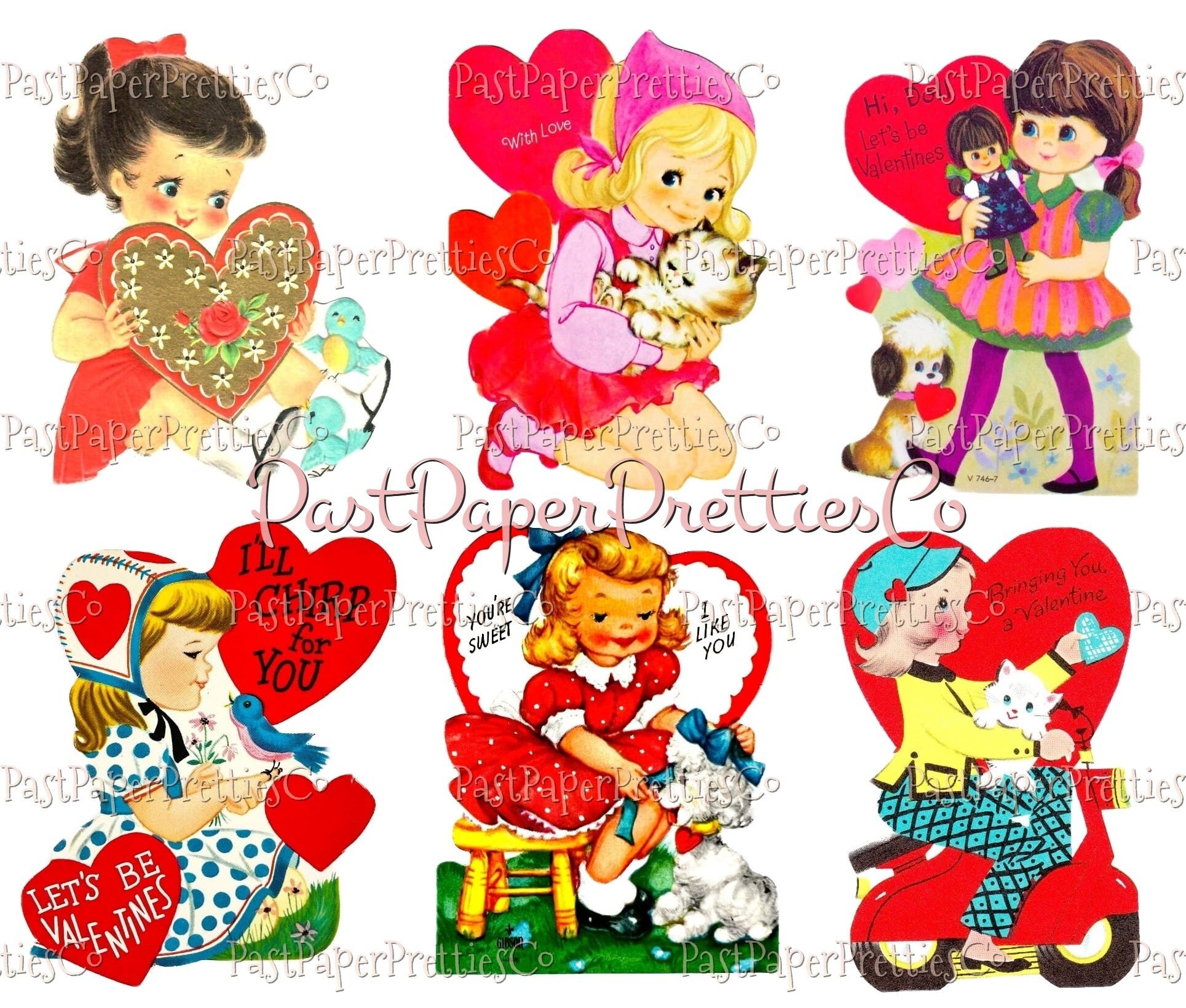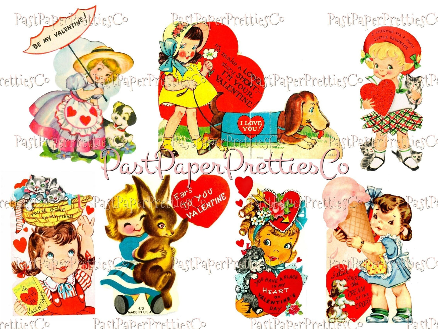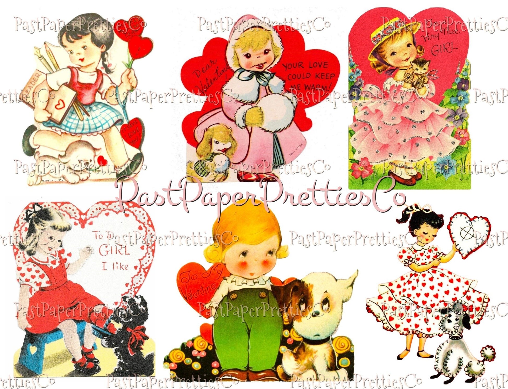 60 Vintage Printable Kids with Pets Valentine Cards Collage Sheets PDF Instant Digital Download Retro Boys Girls Animal Themed Images