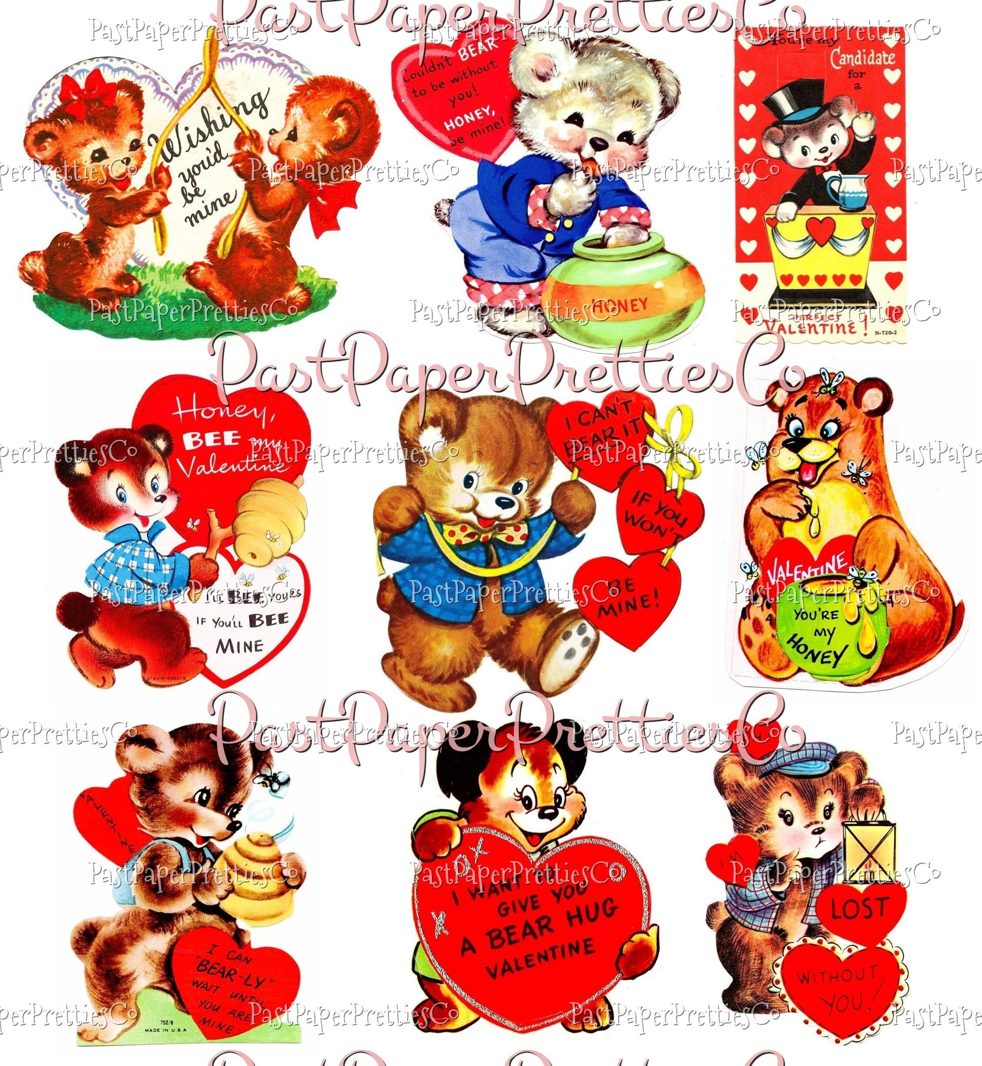 72 Vintage Teddy Bear Valentines Day Cards All Teddies Animal Themed Collage Sheets Printable PDF Instant Digital Download 2 Sizes