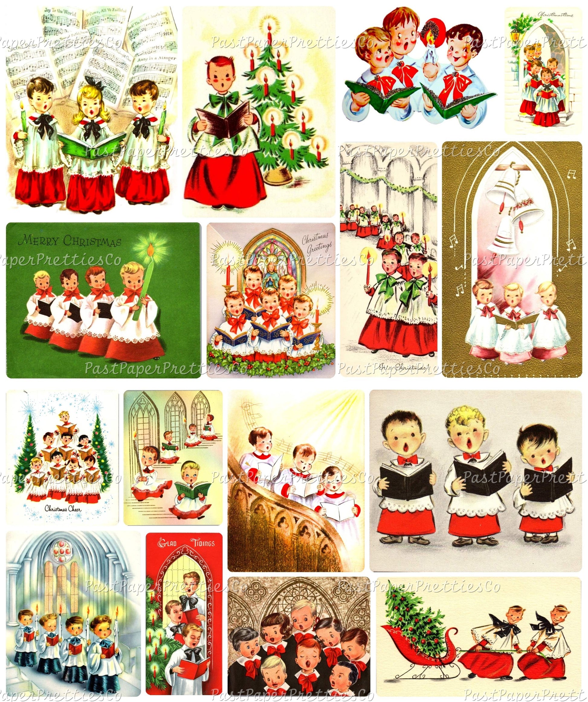 Vintage Christmas Choir Boys Collage Sheets Printable PDF Instant Digital Kitsch Cute Holiday Caroling Church Kids 80 Retro Images