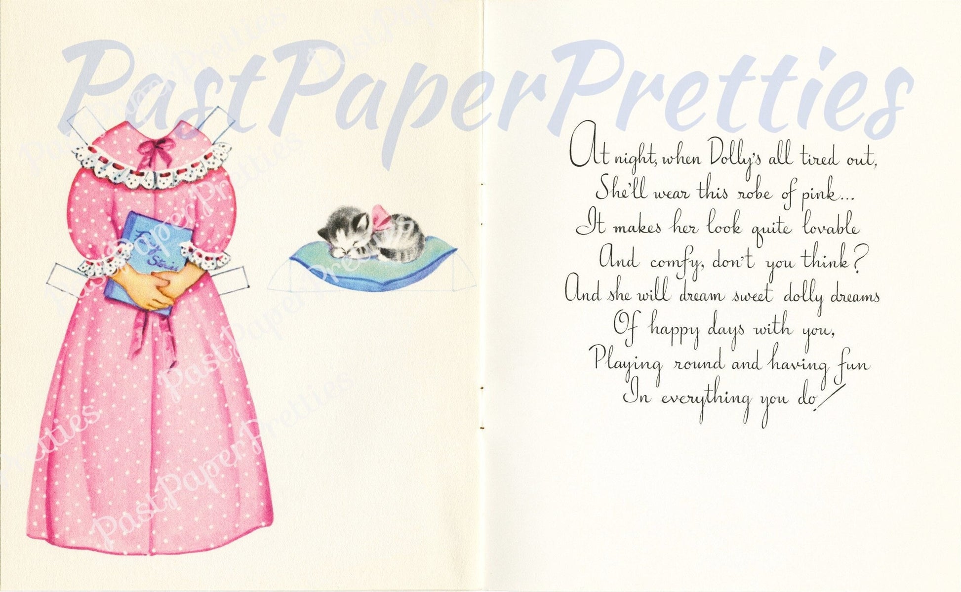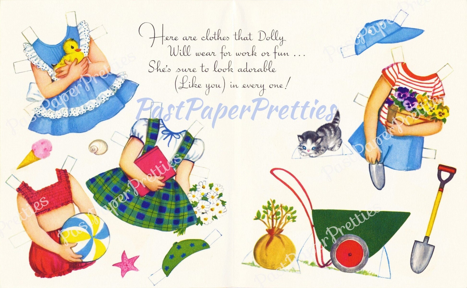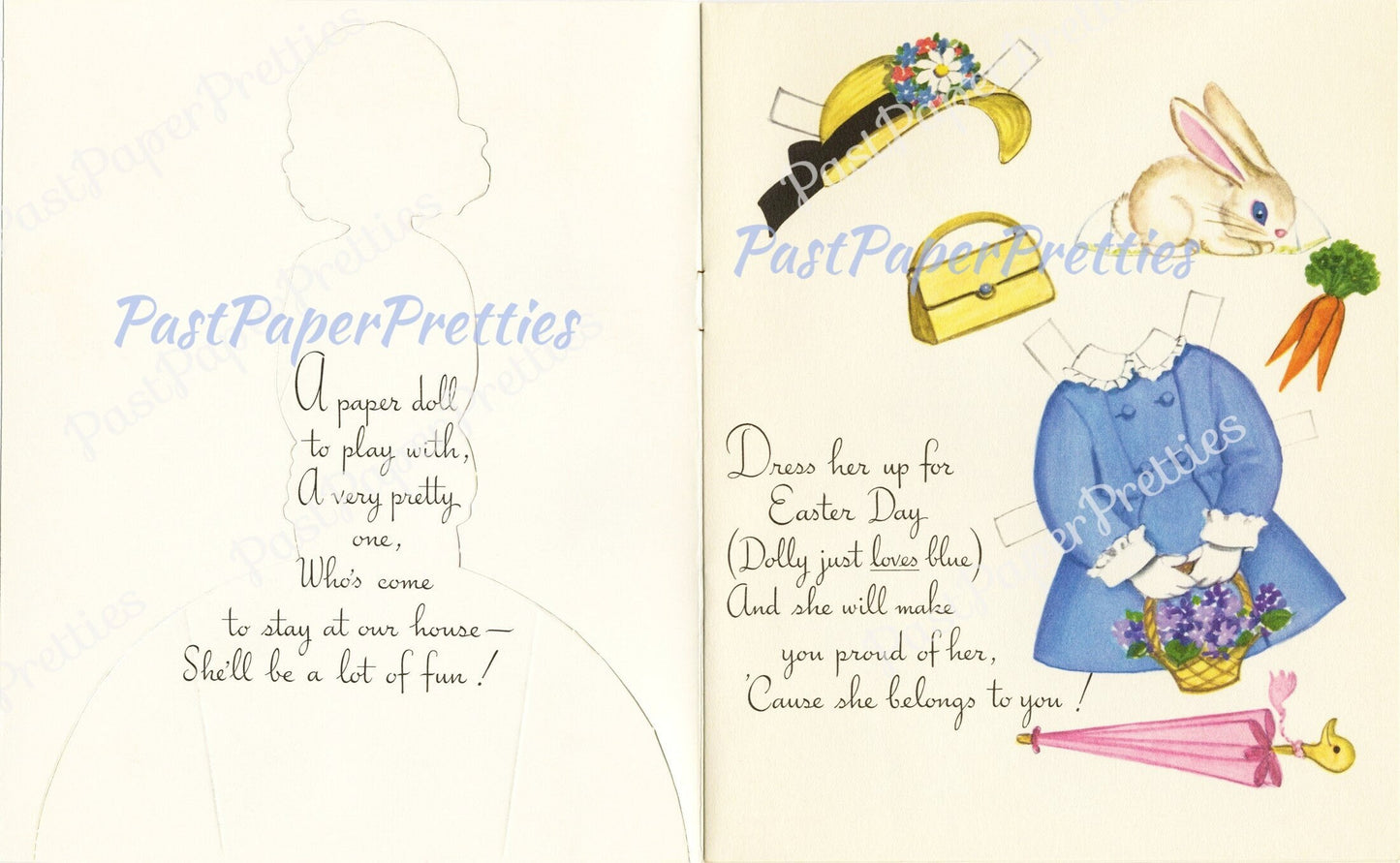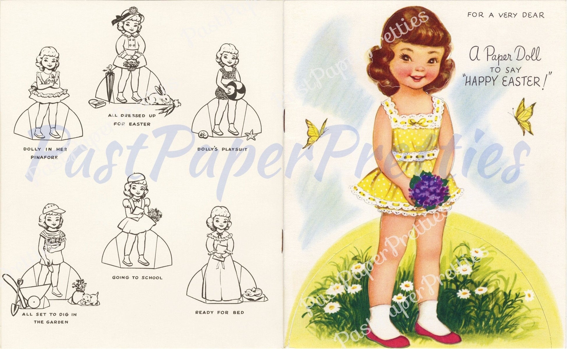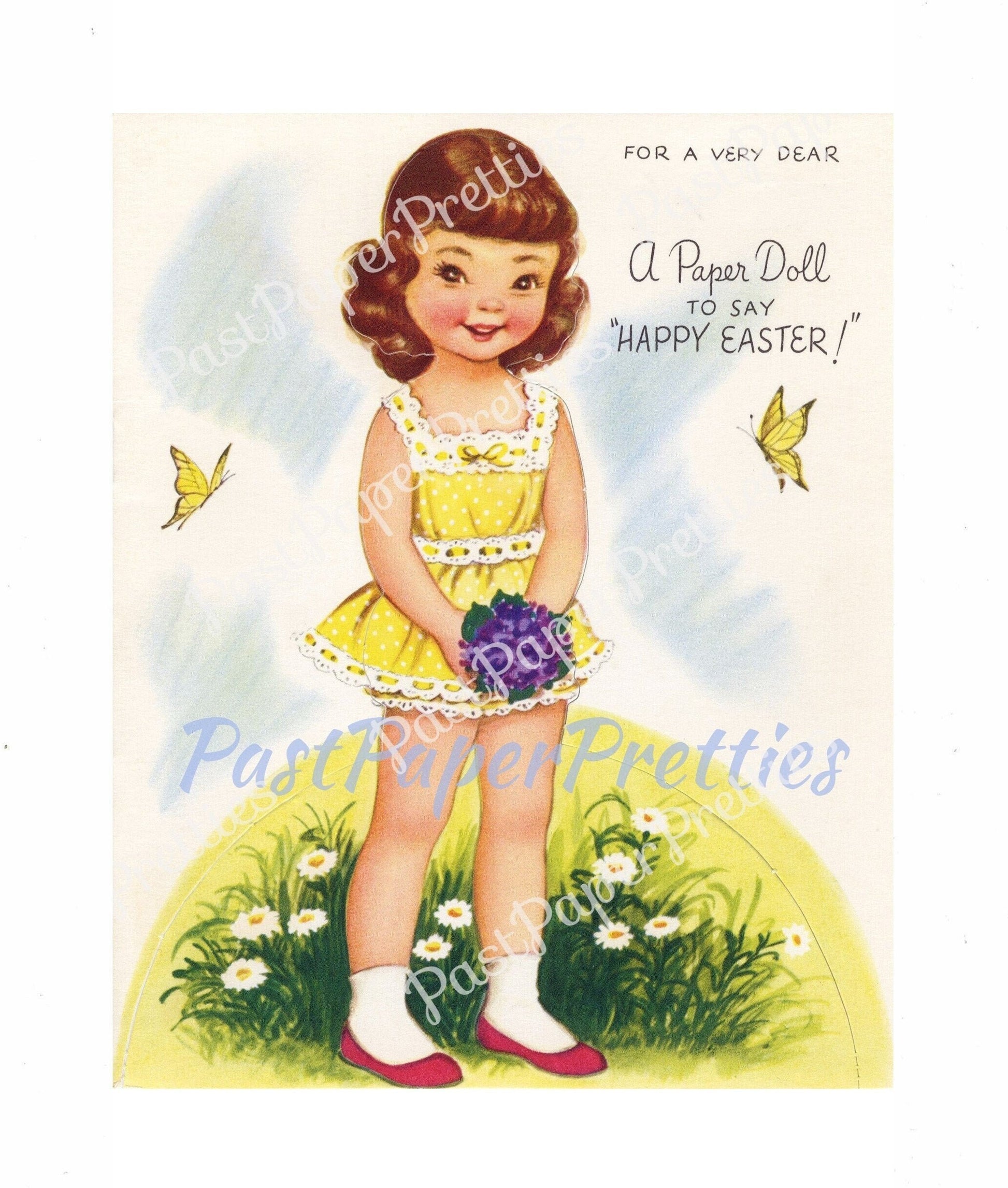 Vintage Easter Paper Doll Pretty Little Brunette Girl and her Pets Folded Printable Card c. 1960s PDF Instant Digital Download 8 Pages
