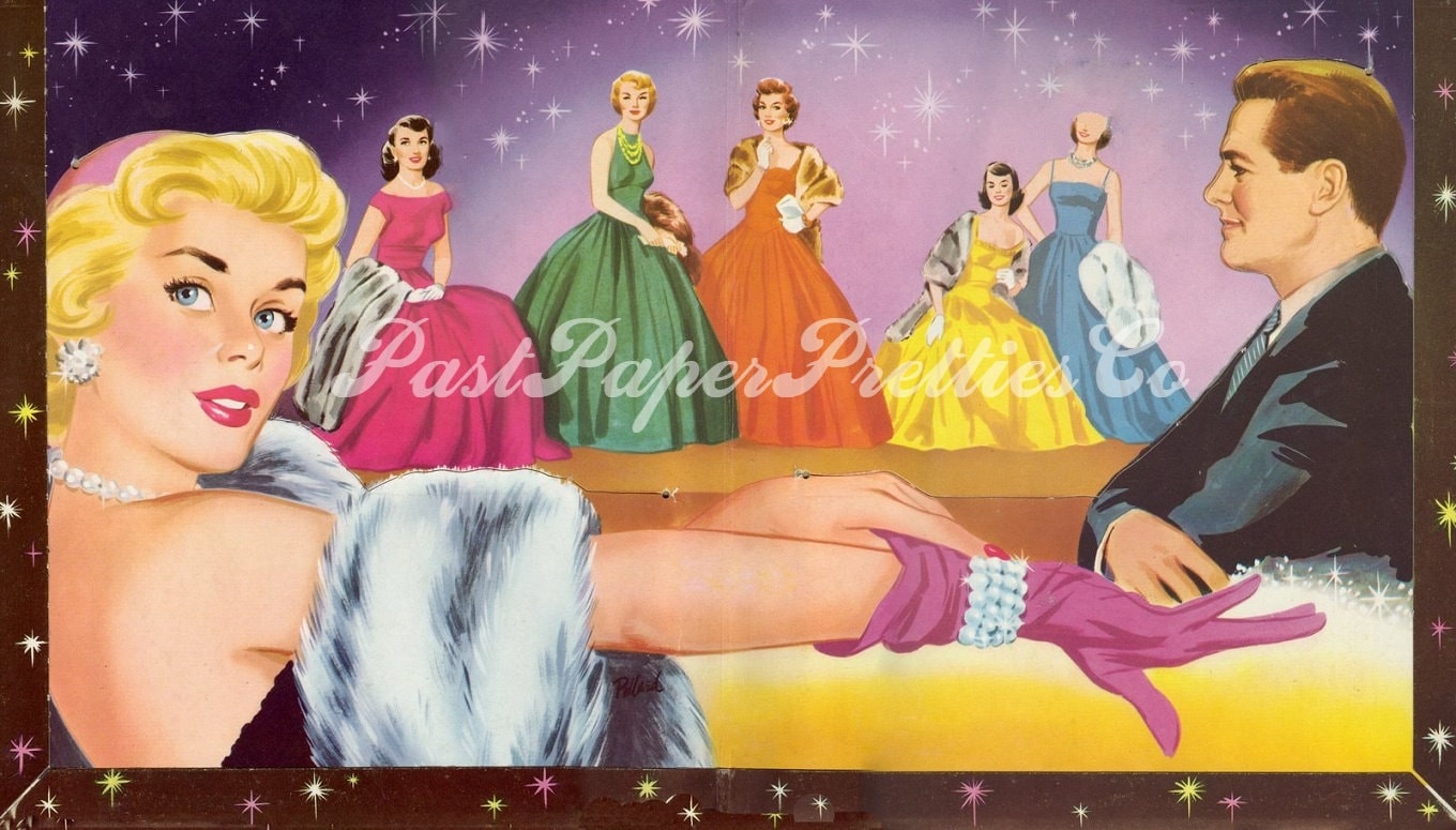 This original 1958 publication repro set includes front & back cover art, 2 pretty ladies, 8 pages of glamourous clothing and accessories and a two page "folio" to print out and store everything!