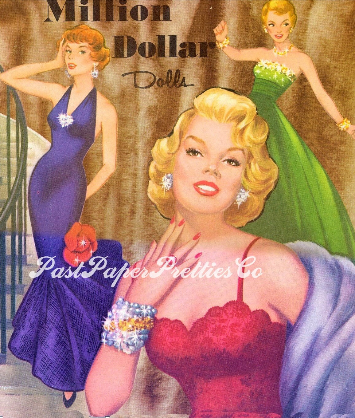 Vintage Million Dollar Paper Dolls Mid Century Glam Models 1958 Printable PDF Instant Digital Download 2 Beautiful Ladies Clothing Clipart