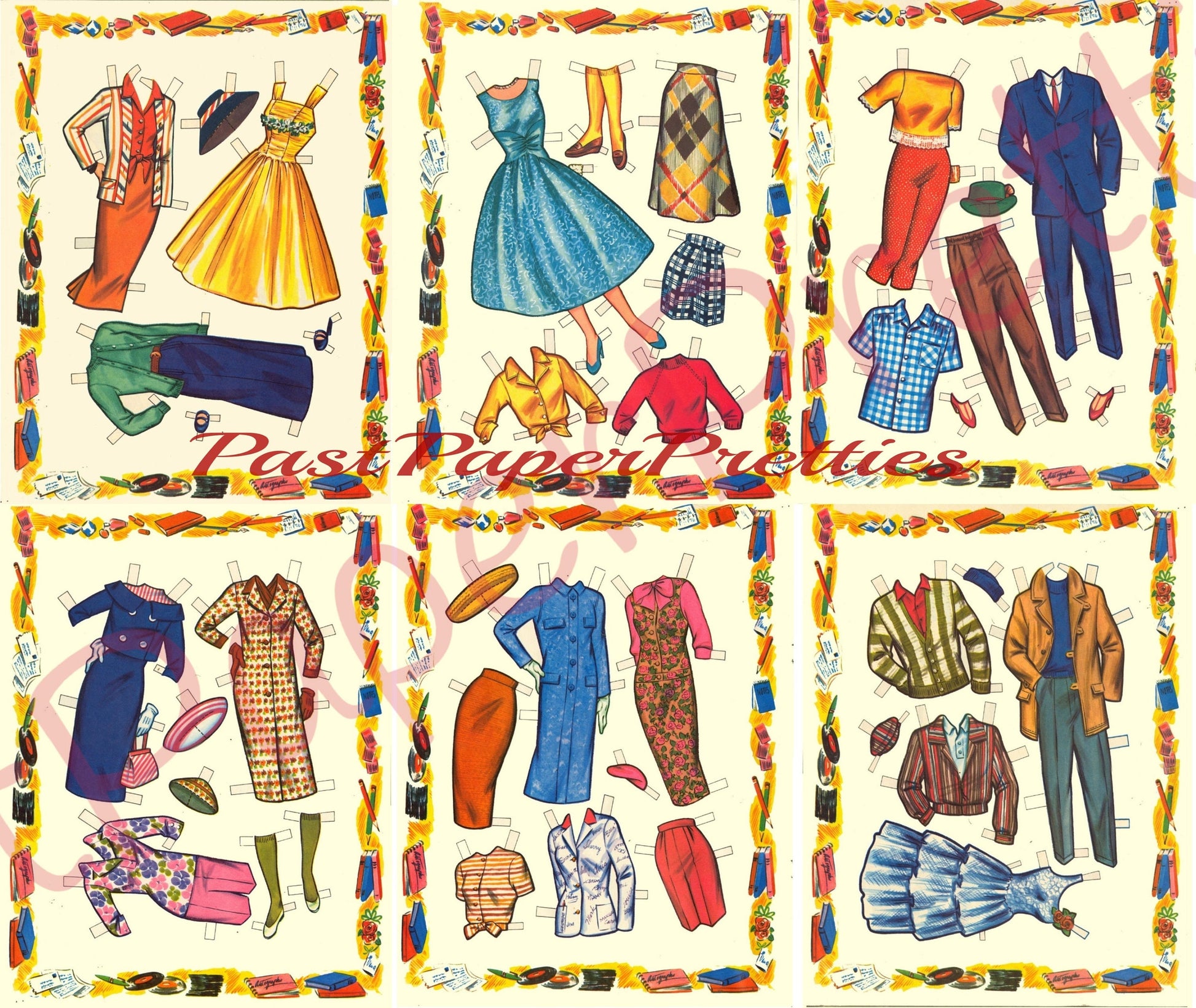 This original 1958 publication repro set includes 4 teenage friends and 6 pages of clothing and accessories for school, play, parties and dates!