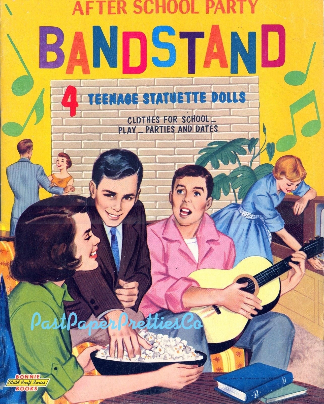 Vintage Paper Dolls After School Party Bandstand c. 1958 Printable PDF Instant Digital Download Teenager School Friends Party Dates Clip Art