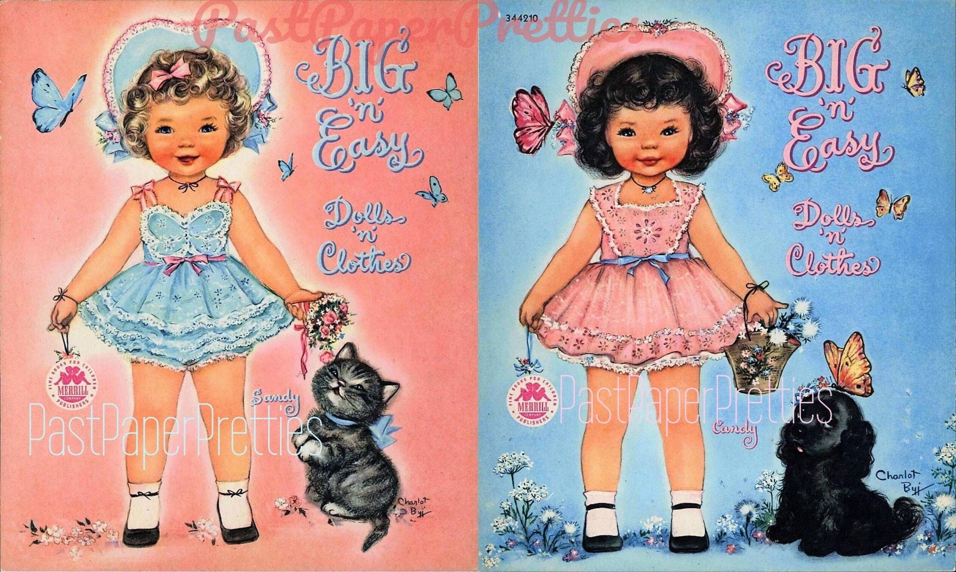 Vintage Paper Dolls Big 'n' Easy Darling Kitschy Cute Little Girls & Pets c. 1949 PDF Printable Instant Digital Download Adorable Clip Art