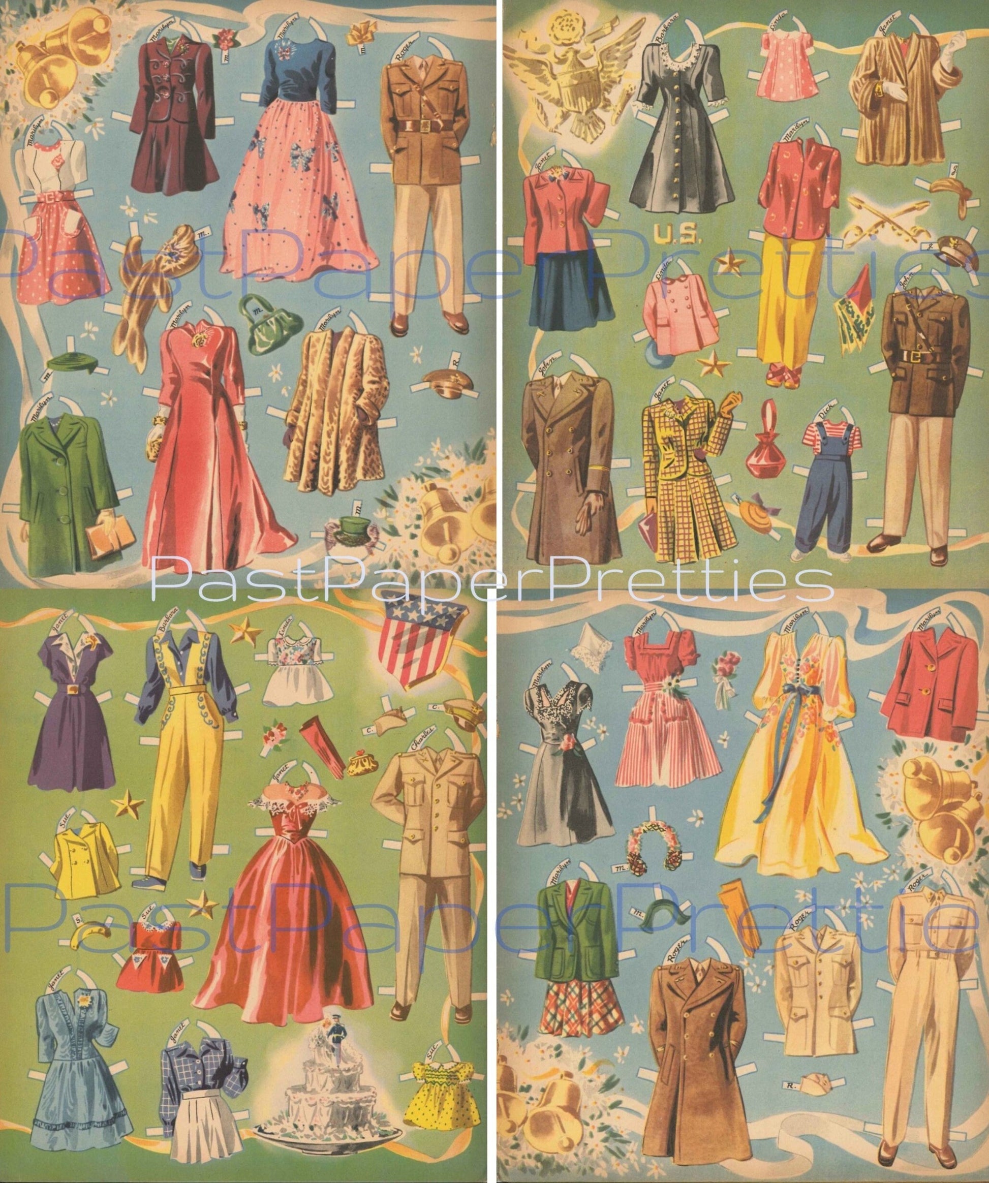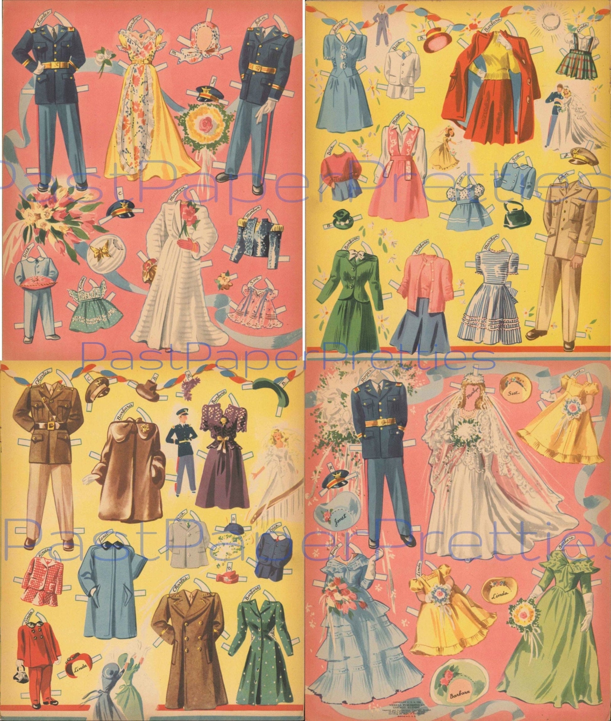 Vintage Paper Dolls Military Wedding 1943 WWII Printable PDF Instant Digital Download Beautiful Wartime Bride Groom Clipart