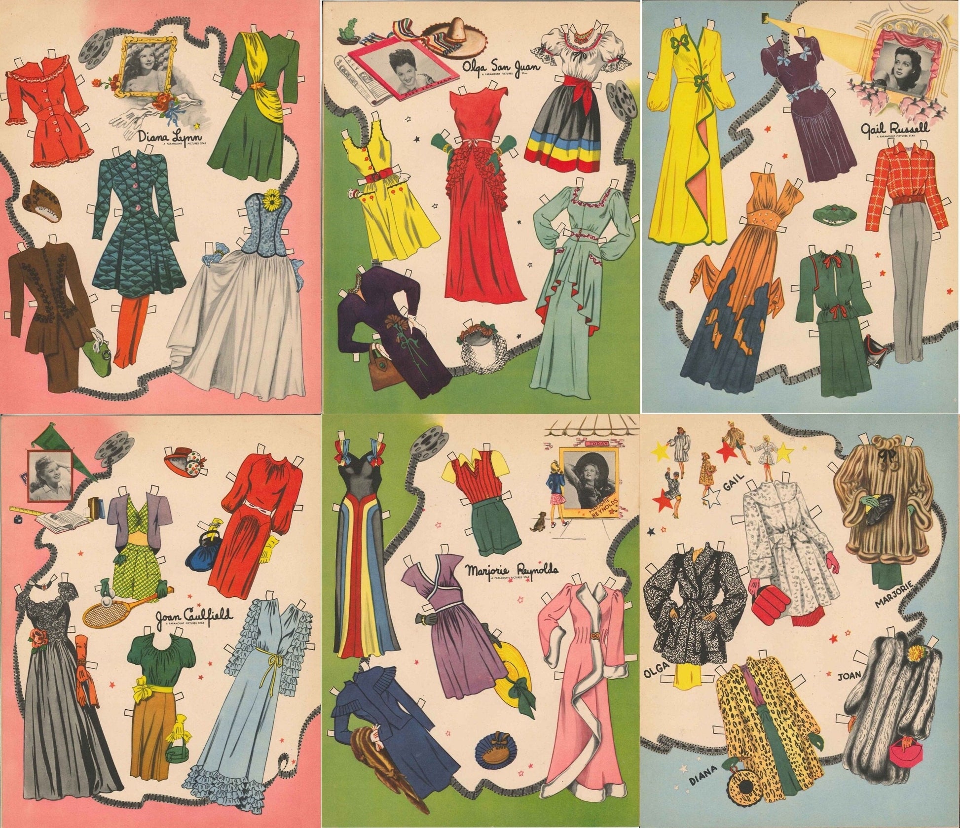 Vintage Paper Dolls Movie Starlets c. 1946 PDF Printable Instant Digital Download 5 Pretty Hollywood Star Movie Dolls Clip Art