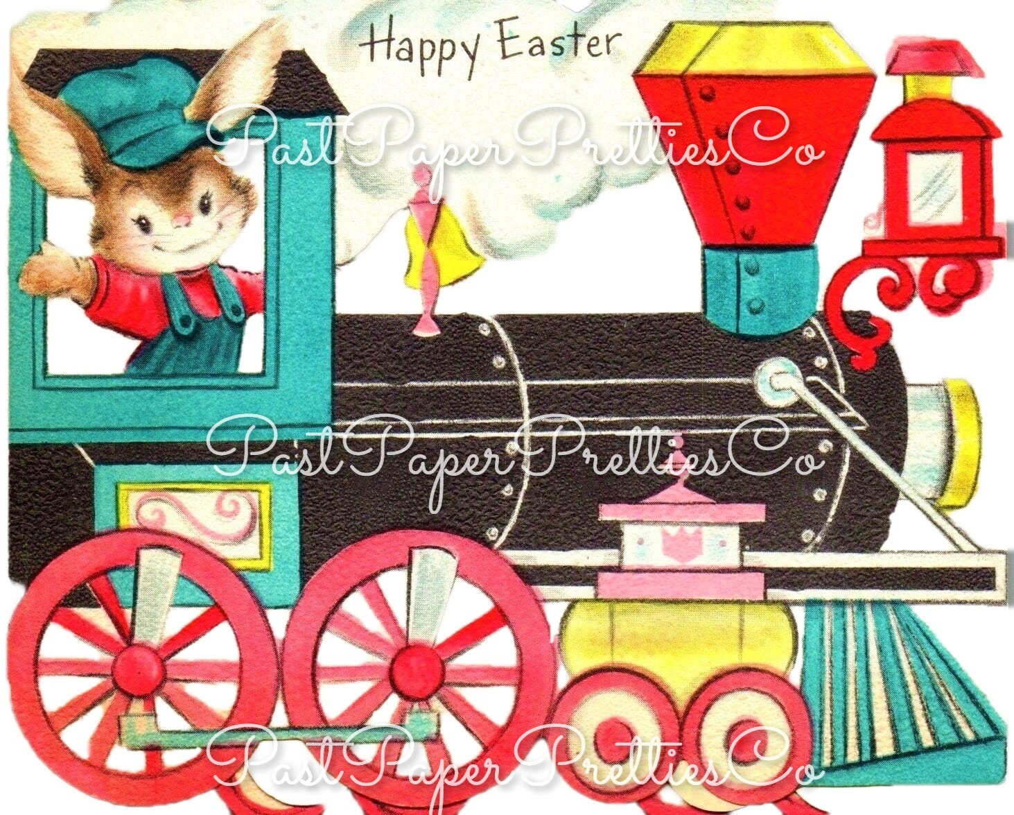 Vintage Printable Easter Bunny Express Choo Choo Train Card Image c. 1950s PDF Instant Digital Download Retro Peter Cottontail Clipart