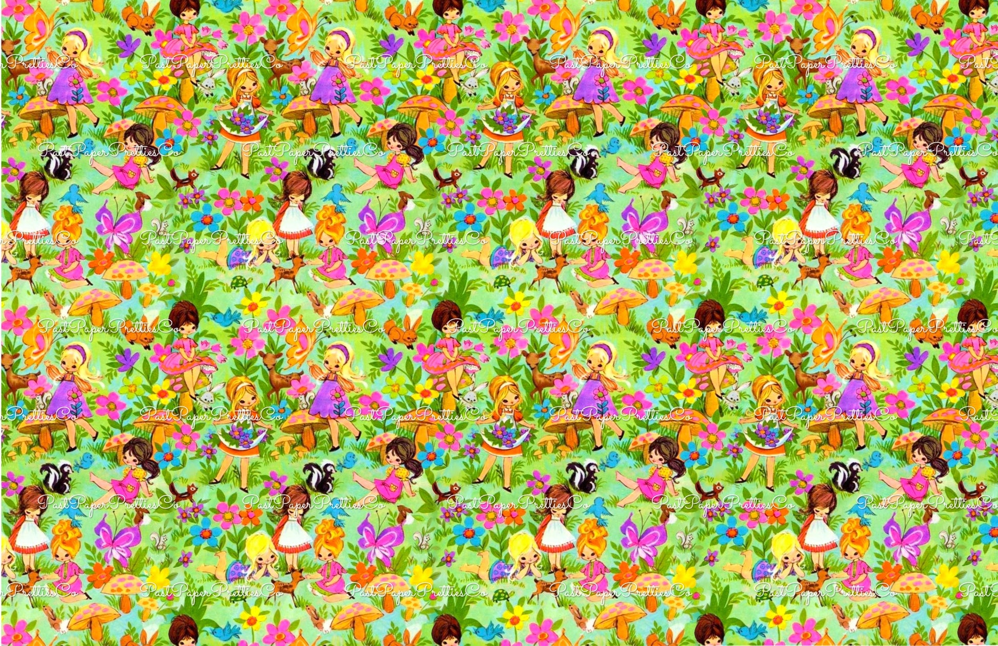 Vintage Printable Gift Wrap Kitsch Woodland Girls Animals Toadstools Image Instant Digital Download Kawaii Forest Friends Wrapping Paper