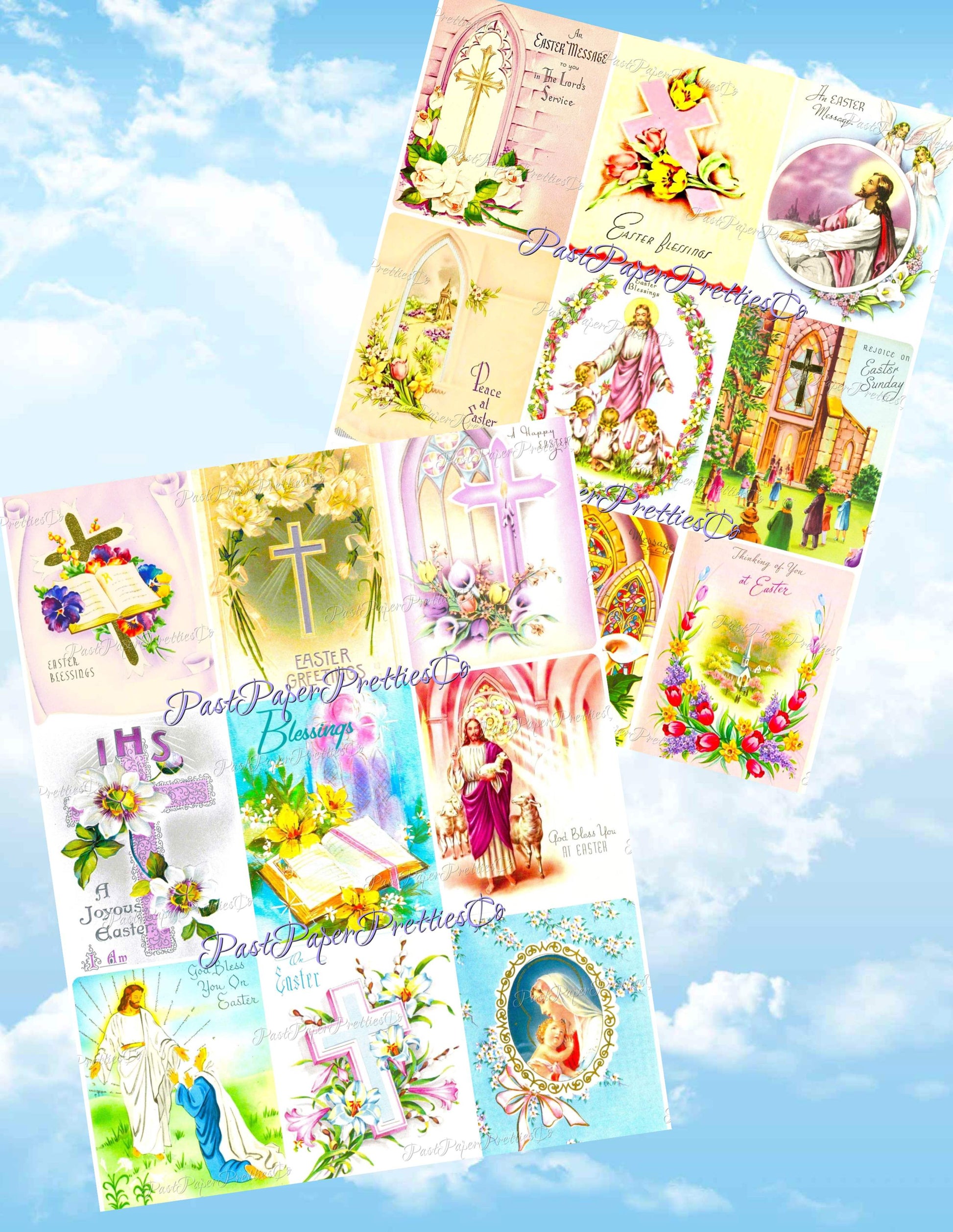Vintage Printable Religious Easter Card Images PDF Instant Digital Download 18 Religious Jesus Christian Happy Easter Clip Art