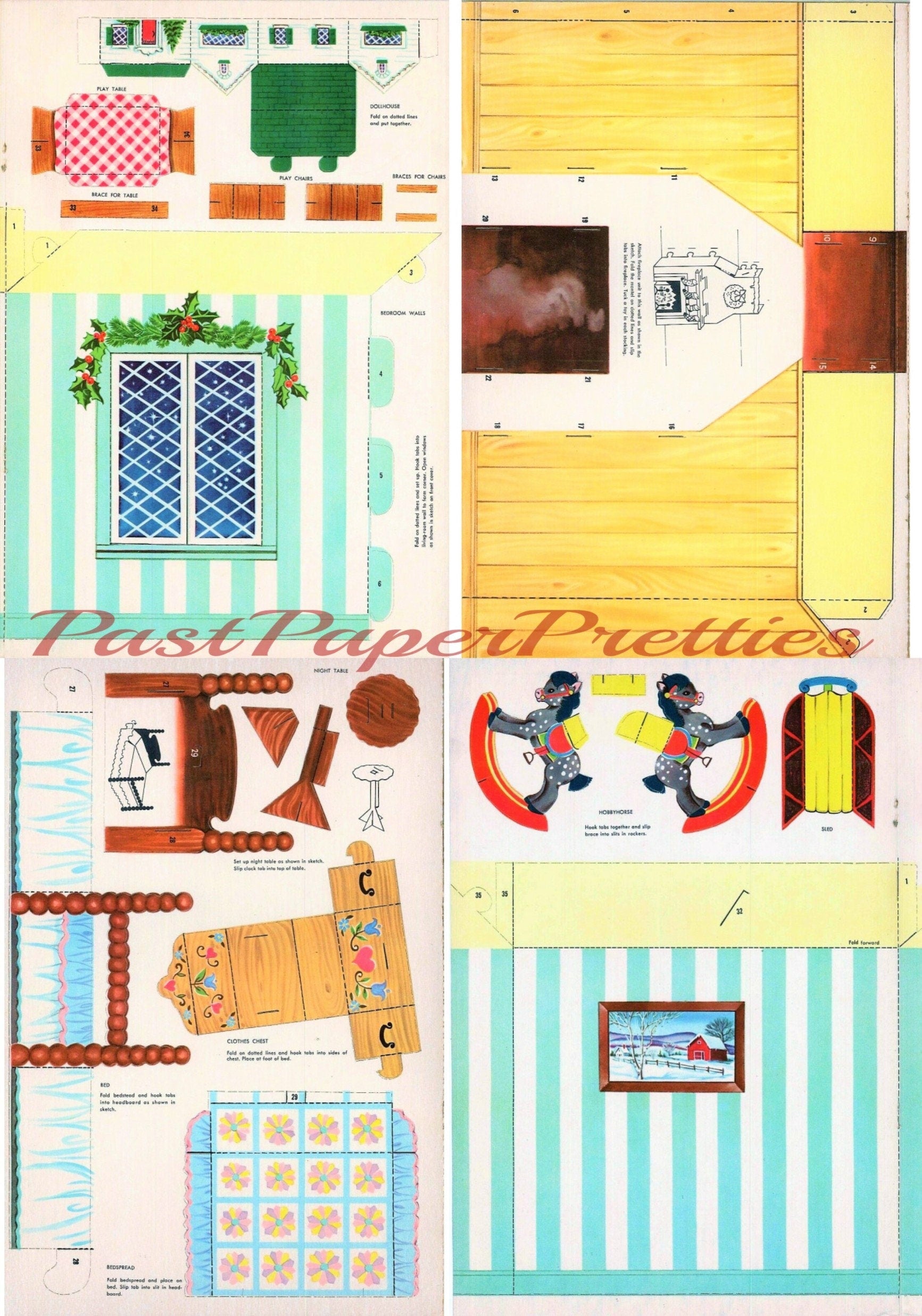 This original 1958 Holiday book repro set features 8 pages of cut out and assemble pieces to create a Night Before Christmas themed playset scene, including paper people, furniture and walls.