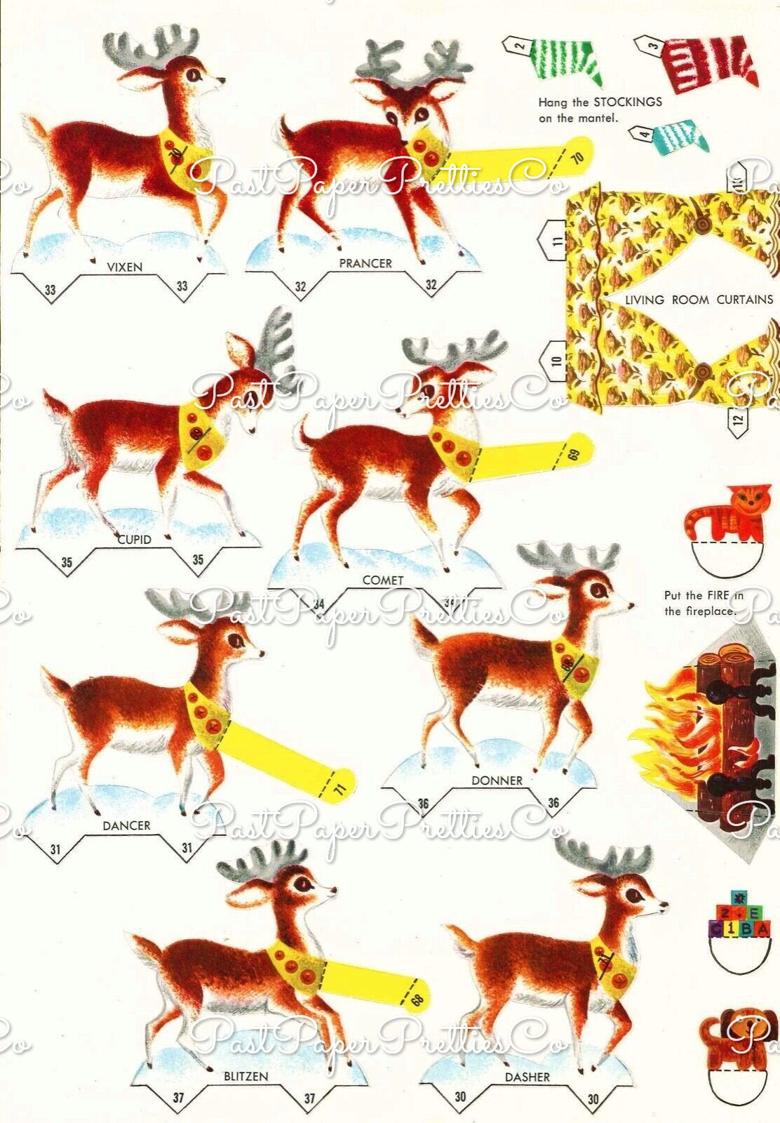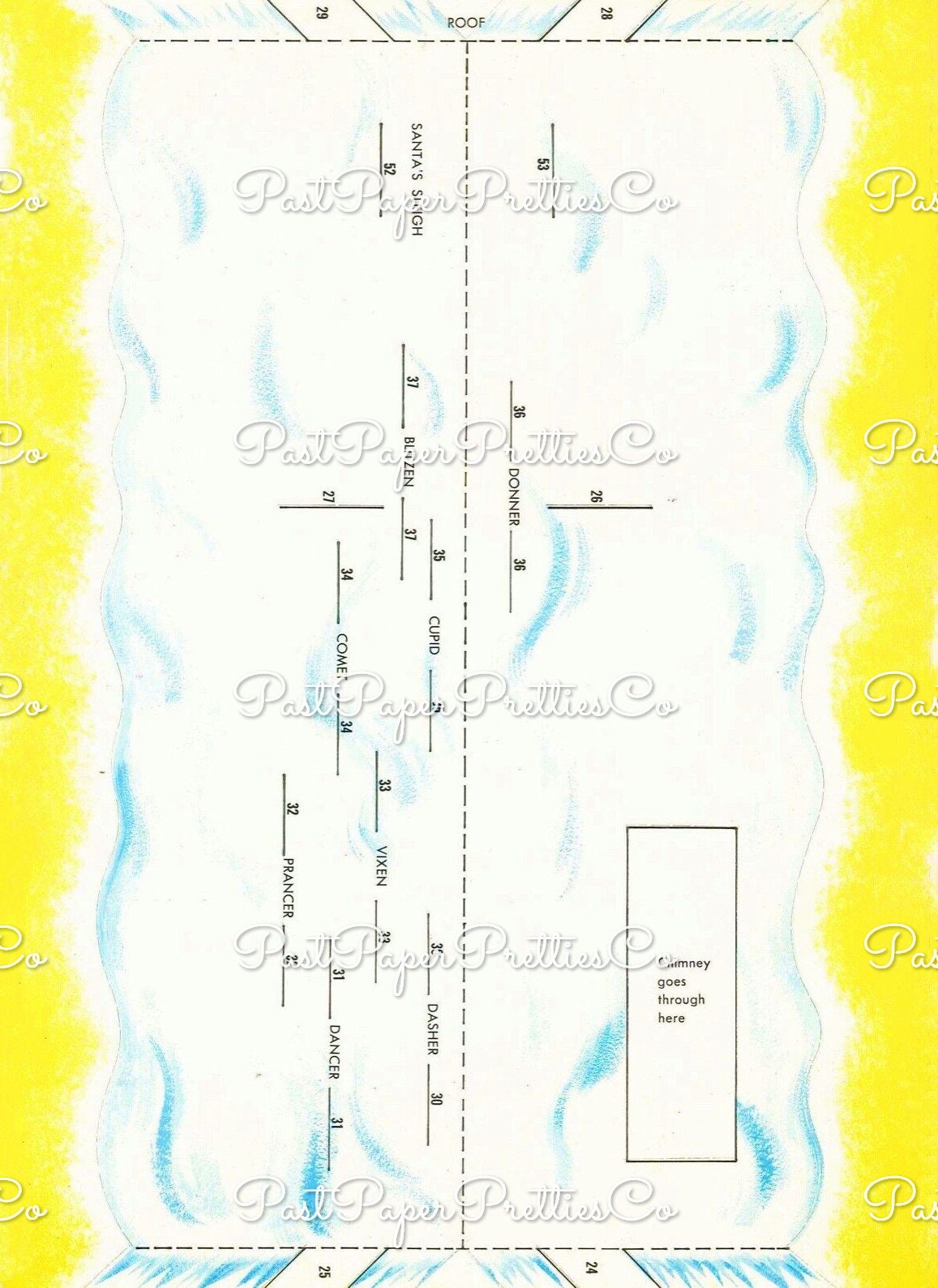 This original retro 1960s Holiday book repro set features 7 pages of cut out and assemble pieces to create a rooftop and Christmas night house scene. Super cute!