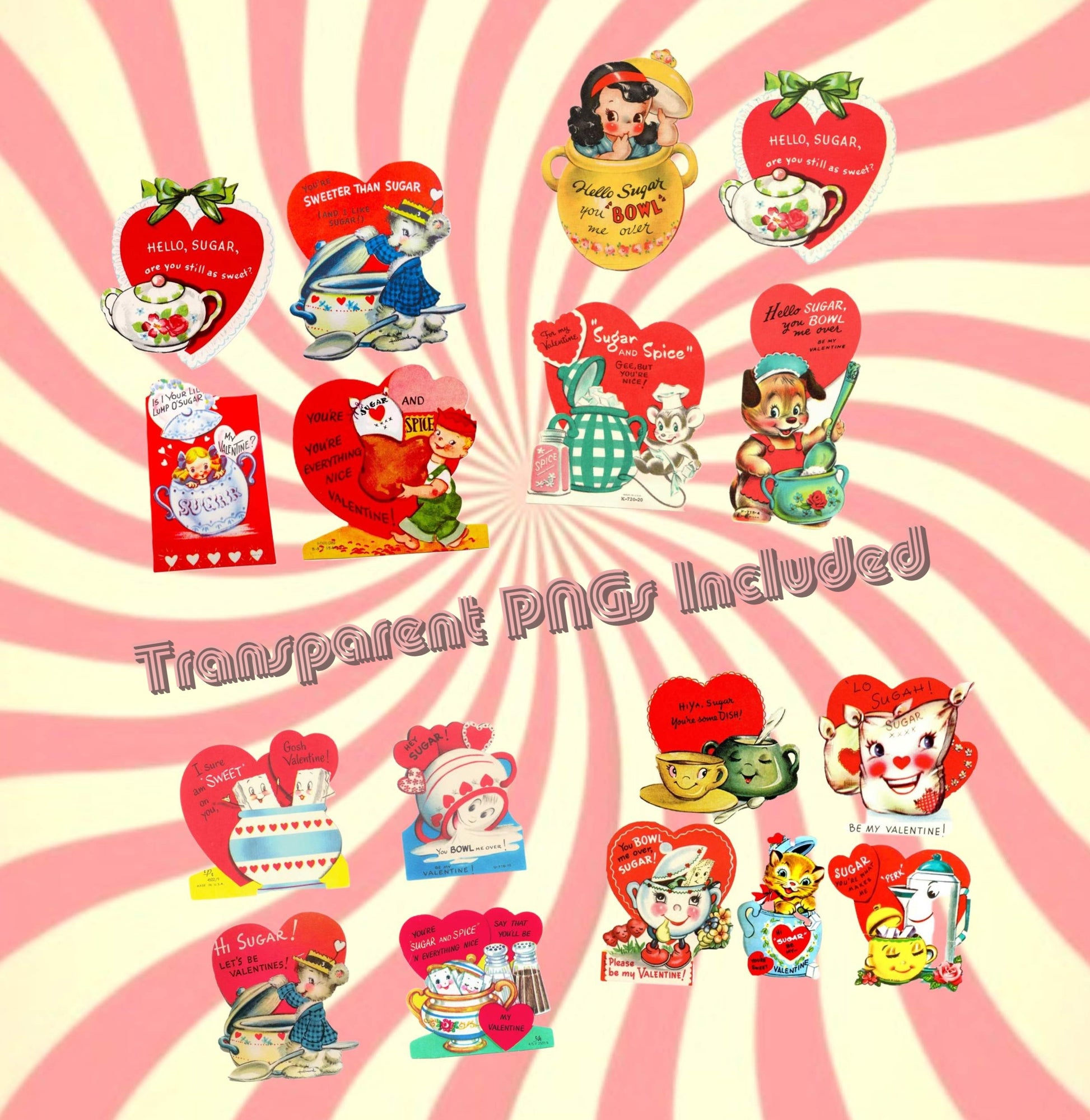 Vintage Printable Valentines Day Cards Sweet Sugar Bowls Theme Collage Sheets PDF Instant Digital Download Retro Valentines JPEG PNG