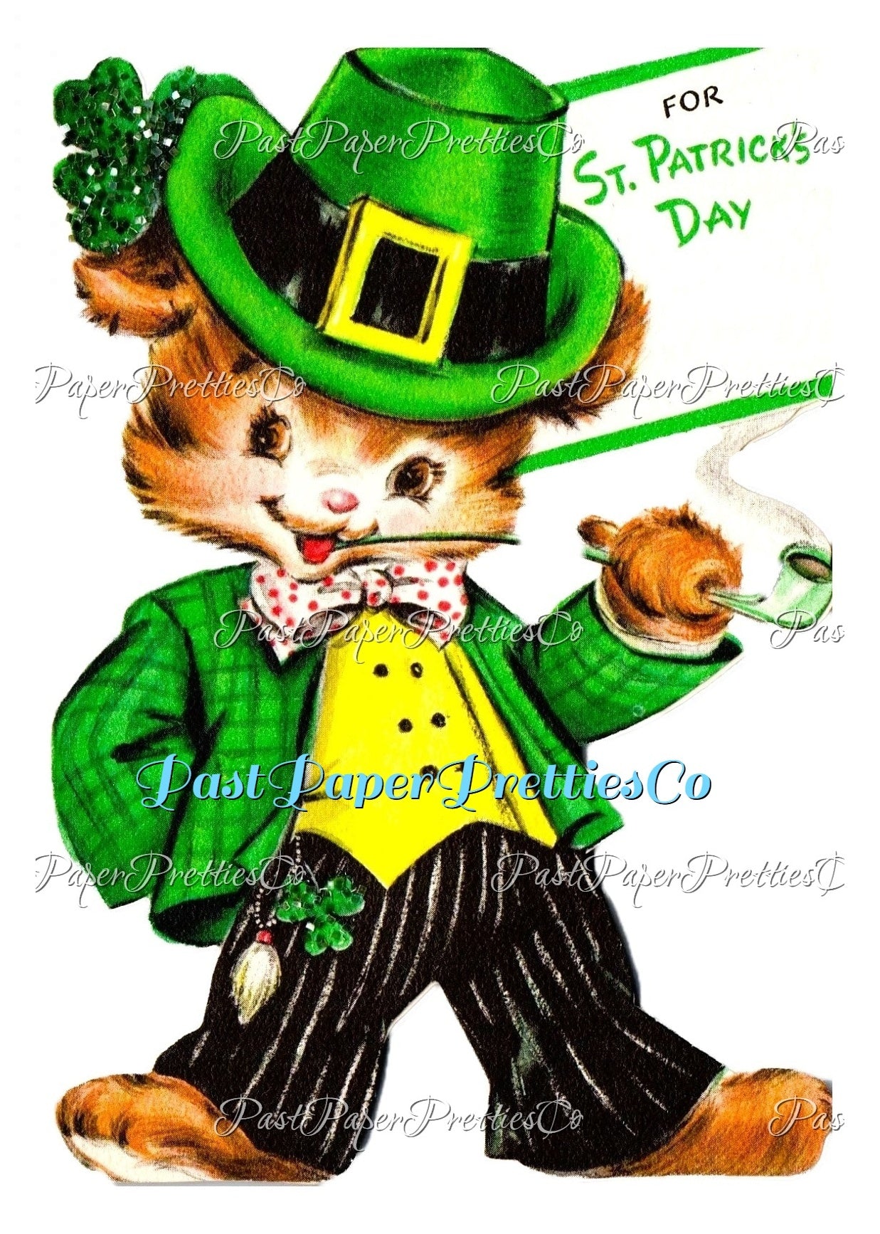 Vintage St. Patricks Day Irish Teddy Bear with Hat Card Image Printable Instant Digital Download Cute Kitsch St. Paddys Animal PNG JPEG