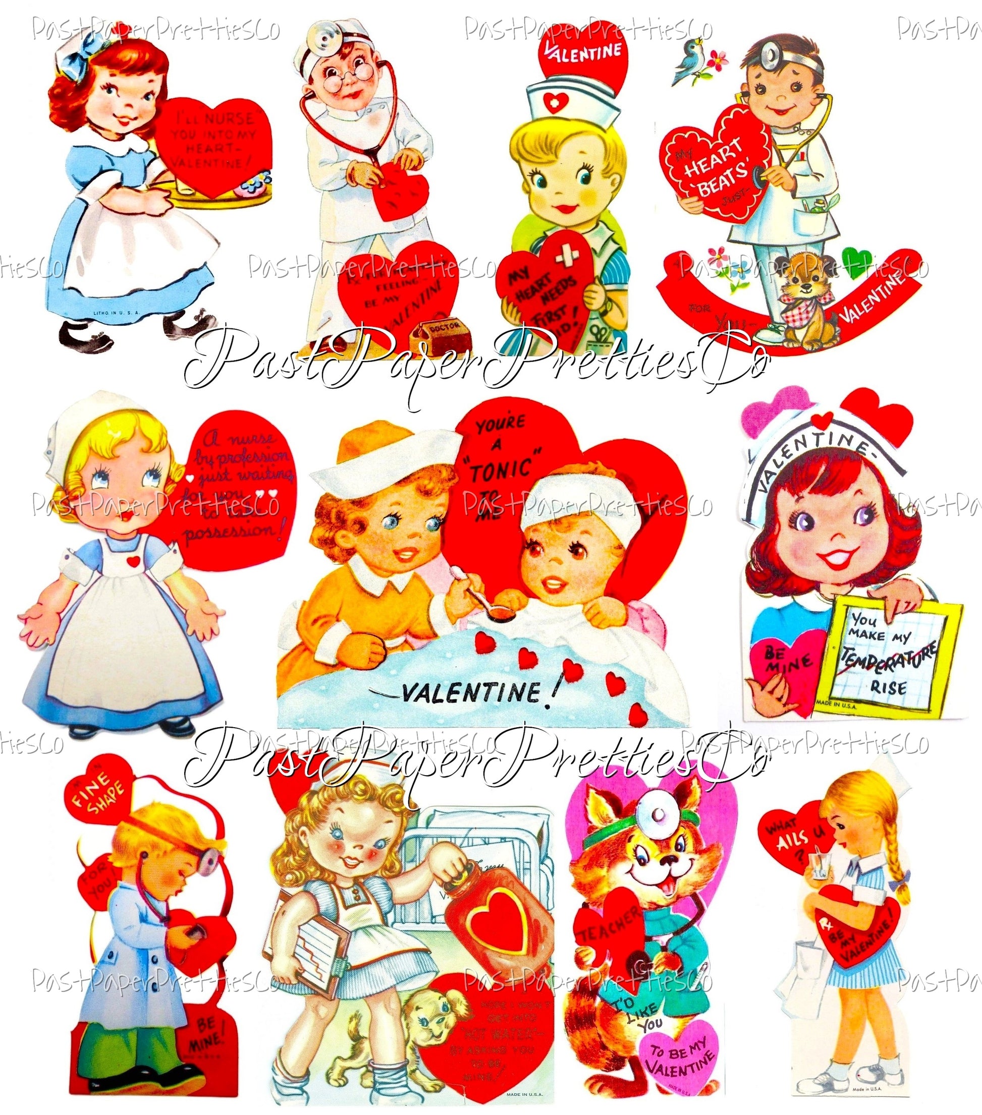 Vintage Valentines Day Doctor Nurse Themed Printable Card Image Collage Sheets PDF Instant Digital Download 36 ALL Cute Medical Hospital